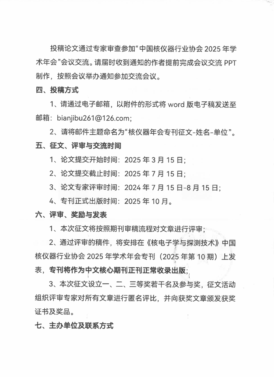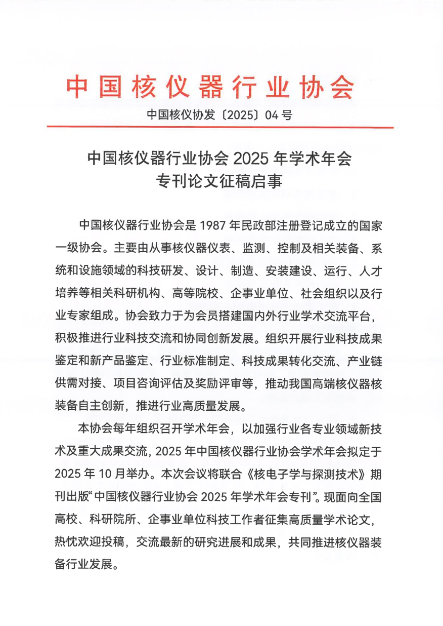 中国核仪器行业协会2025年学术年会专刊论文征稿启事