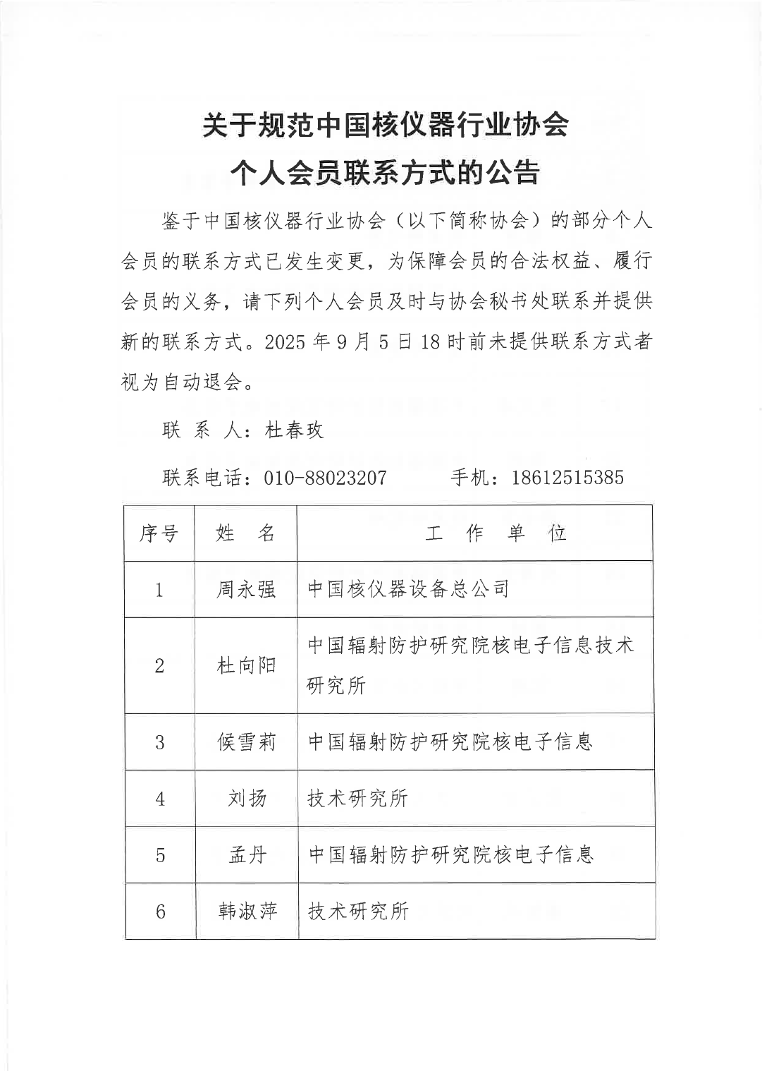 关于规范中国核仪器行业协会个人会员联系方式的公告